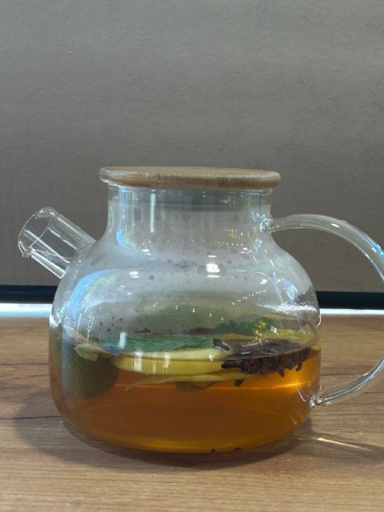 Подається зі смородиновим соусом та овочевим міксом (перець солодкий, цибуля, спаржева квасоля)