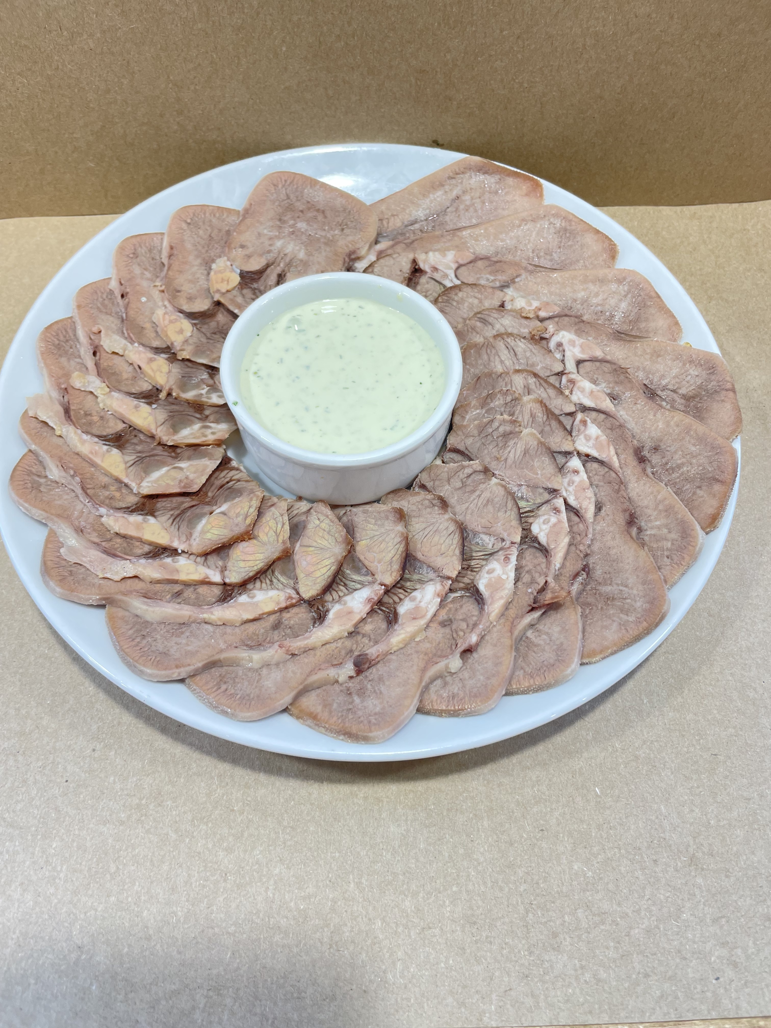 Яловича грудина, подається з асорті солінь та соусом(волога мариновка)Замовлення від 200г