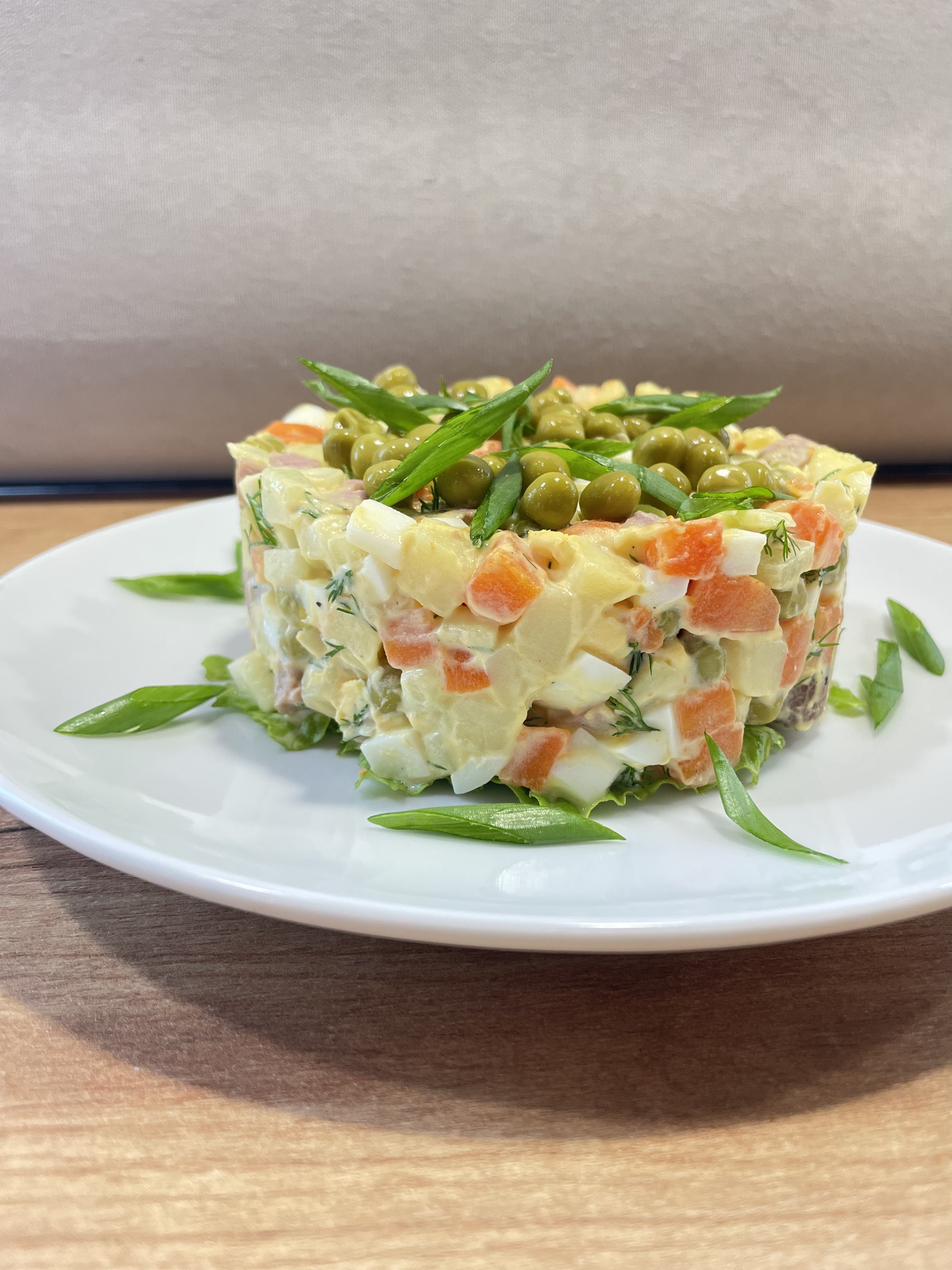 Помідори, огірки, перець болгарський, ромен, цибуля марс, оливки, в'ялені томати, оливкова олія