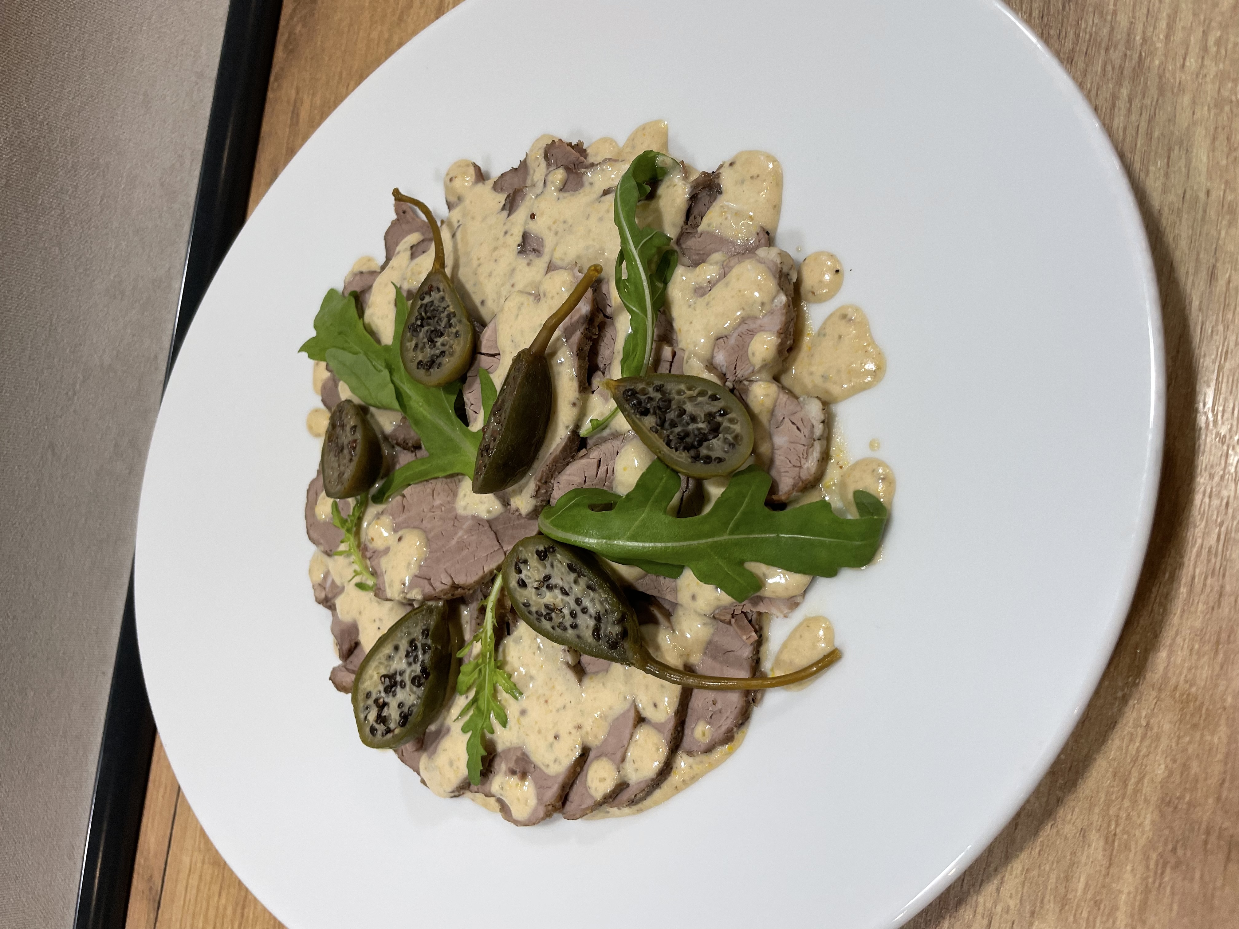 Яловича грудина, подається з асорті солінь та соусом(суха мариновка)Замовлення від 200г