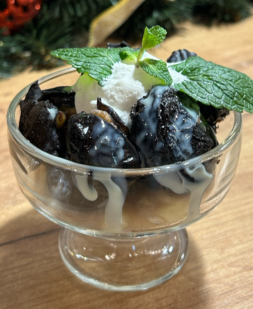 Гауда грін песто, гауда з чорнилами каракатиці, пармезан, брі, дор блюПодається з медом та грецькими горіхами